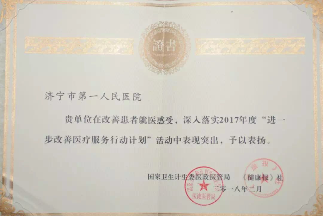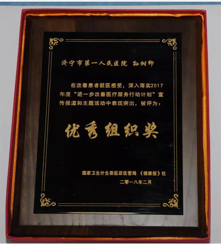 2月3日,在北京召开的“进一步改善医疗服务行动计划三年总结推广暨下一阶段宣传工作启动会”上传来喜讯,我院荣获“2017年度改善医疗服务示范医院、优质服务岗、优秀组织奖三项大奖。本次活动是由国家卫生计生委医政医管局和《健康报》社共同主办。我院纪委书记郭金菊代表医院上台领奖,来自全国卫生计生界管理者代表近400人参加了会议。