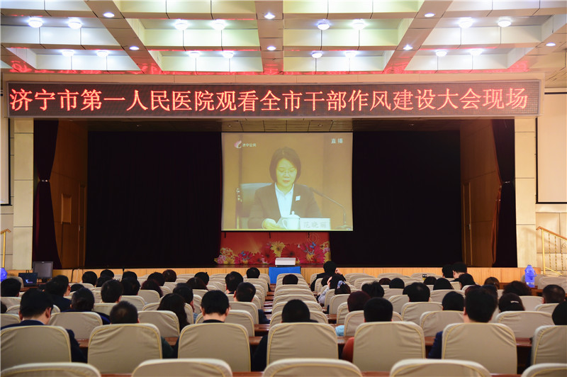 2月23日上午,市委、市政府召开全市干部作风建设大会,会议通过济宁广播电视台向全市直播。根据市委及市卫计委党委要求,医院领导班子成员、职能科室全体人员分别在总院区和东院区集中收看了会议实况。