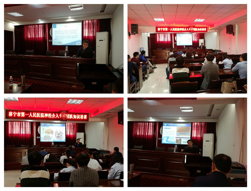 本次巡讲是鲁西南地区脑血管病巡讲项目第三站,本次巡讲的主要内容是颅内外搭桥技术治疗烟雾病、颈动脉狭窄支架植入与内膜剥脱手术、蛛网膜下腔出血诊治流程。我院冯雷主任、刘运振副主任医师、刘军和苏春海主治医师分别作了精彩的专题讲座,培训现场学员学习热情高涨、氛围浓厚。