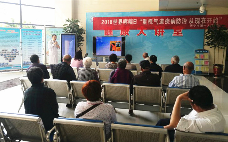 在医院东院区健康大讲堂上,呼吸内科曹继磊医师对前来的患者及家属进行了支气管哮喘防治宣讲,从“什么是哮喘? 为什么会患哮喘? 哮喘的危害有多大? 得了哮喘应怎样防治与管理?”等方面进行了详细的讲解。呼吸内科主任刘瑞娟带领科室医护人员就患者及其家属的提问进行了耐心、细致的解答。