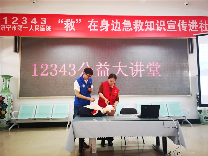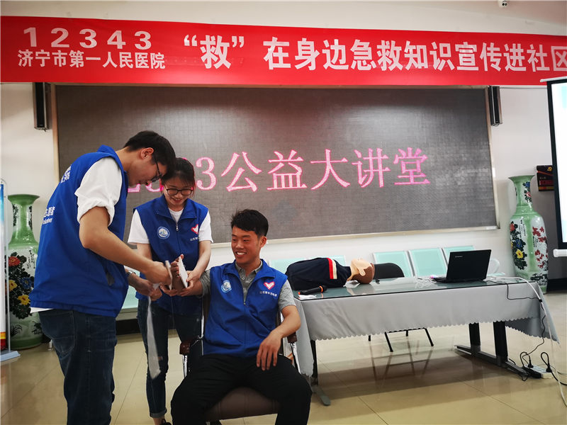 “救”在身边应急救援青年志愿者服务项目是由急诊科承办的大型志愿者急救知识宣传公益活动,同时也是急诊科创建全国青年文明号的延续性活动。活动开展以来,志愿者们利用下夜班休息时间进社区、进学校、进机关、进企业、进农村,进商场,进公共场所,积极宣传急救知识,普及急救技能,培训心肺复苏等操作技术。2018年,急救知识宣传进社区是活动的重中之重。本次活动是“救”在身边联合济宁市家庭服务中心12343公益服务平台联合发起的大型公益服务活动,本次活动的开展,将为社区居民学习急救知识开启新的篇章,未来,“救”在身边将继续走进城区各大街道社区,为更多的市民送去急救常识,切实营造“人人学急救,急救为人人”的良好社会氛围。