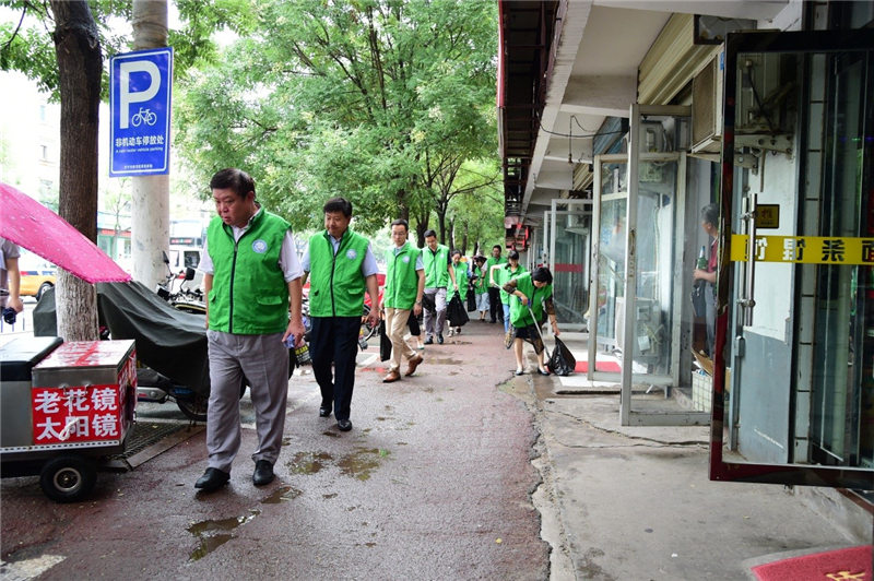 冒着微微细雨,党员们在健康路一边认真清理路面垃圾、烟头等杂物,一边整理乱停放车辆,劝阻逆行、抽烟等不文明行为。党员志愿者们发扬不怕苦、不怕脏、不怕累的光荣传统,经过几个小时的清理整治,道路环境卫生得到了明显改善,面貌焕然一新。