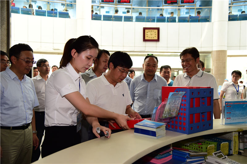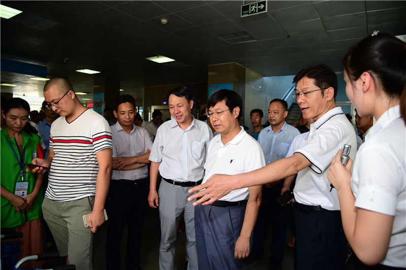 在我院共享轮椅放置区,曹广一行详细了解共享轮椅的功能及使用方法,对我院作为全市首家推出共享轮椅方便百姓就医的工作给予高度评价与充分赞许。