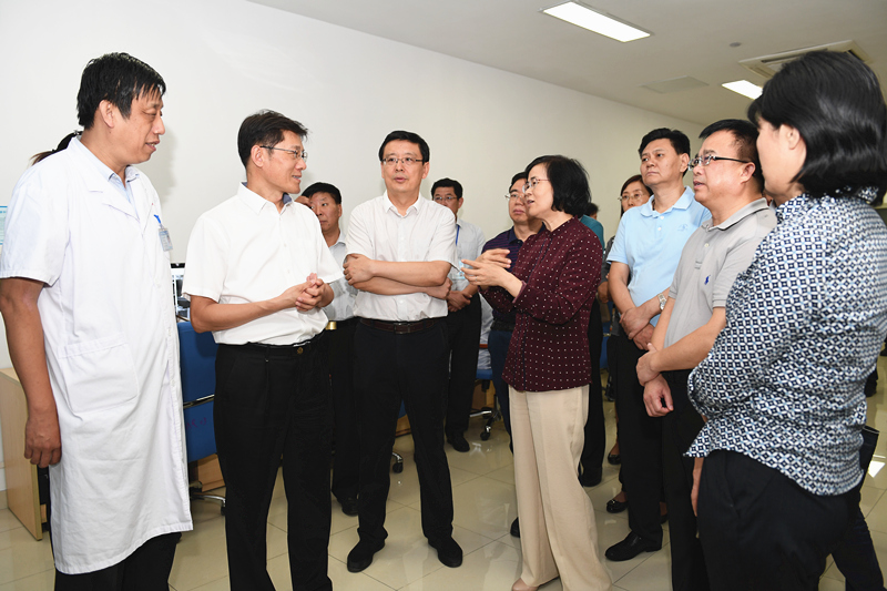 9月12日下午,山东省卫生计生委党组书记、主任袭燕一行在济宁市委常委、统战部部长白山、济宁市卫生计生委党委书记、主任焦华、济宁市卫生计生委党委委员、济宁市第一人民医院党委书记、理事长孙树印及医院领导班子的陪同下,前往济宁市第一人民医院东院区调研。