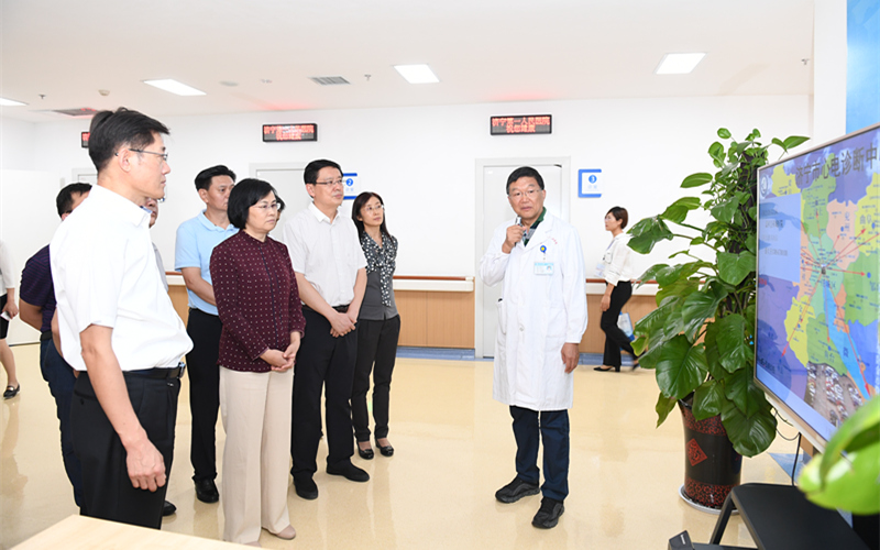 袭燕一行实地查看了济宁市第一人民医院东院区医学影像会诊中心、心电诊断中心、远程会诊中心等相关科室,详细了解了济宁市第一人民医院区域性优质医疗服务圈,缩小区域间医疗差距、三级医院“同质化”医疗服务及卫生计生工作开展情况,深入临床一线,和医护人员面对面进行交谈,并鼓励大家踏实工作,积极进取。