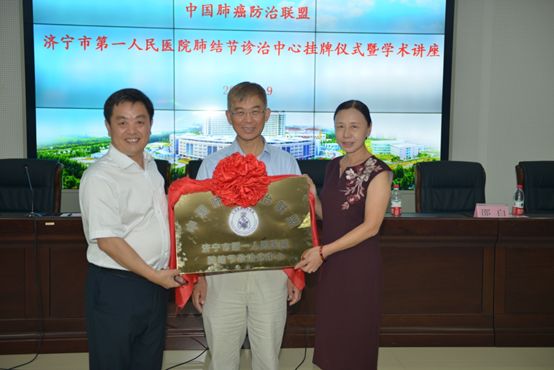 9月9日,经中国肺癌防治联盟考察,济宁市卫计委批准,济宁市医学会胸外科暨微创技术专业委员会筹办,“中国肺癌防治联盟济宁市第一人民医院肺结节诊治分中心”正式成立。中国肺癌防治联盟主席、上海呼吸病研究所所长、复旦大学附属中山医院呼吸科教授白春学,济宁医学会秘书长孔凡生,济宁市第一人民医院副院长乔森,济宁市第一人民医院相关科室负责人共同为“肺结节诊治中心”揭牌。肺结节门诊同期开设。