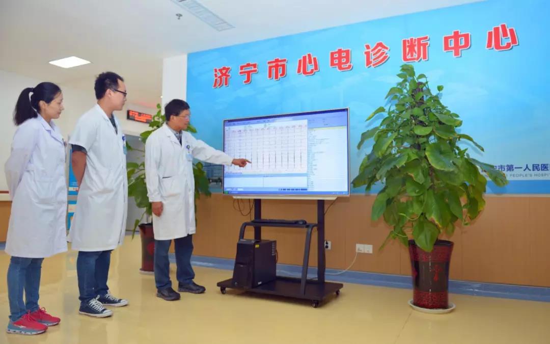 心电网络信息系统是现代化医院的基石和重要标志之一,医院于2012年在济宁市率先使用院内心电网络系统,目前已覆盖两院区所有临床科室。2013年3月医院又投资数百万元陆续免费为遍及济宁市及菏泽地区17县市区的130多家基层医院及社区医疗机构安装了心电工作站,成立了山东省乃至国内规模最大的心电远程会诊系统,弥补了广大基层医院专职心电工作者缺乏的现状。自心电网络远程中心成立以来,截止2018年7月共会诊院外病人约51.2万人次,使广大鲁西南人民在家门口就可享受到“三甲”医院待遇。为了推进远程医疗服务,心电图室又于2014年引进远程实时心电监测,并与3家基层医院建立联网合作关系。