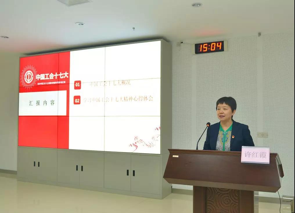 济宁市第一人民医院党委委员、工会主席许红霞主席作为济宁市卫生计生系统唯一代表参加了中国工会十七大会议,在会上,她详细介绍了中国工会十七大召开的盛况,传达学习了习近平总书记同全总新一届领导班子成员集体谈话的重要讲话精神,解读了中国工会十七大报告主要内容,分享了参会体会:一是坚持正确的政治方向,忠诚党的事业团结,引导职工群众听党话、跟党走。 增强“四个意识”、坚定“四个自信”,大力弘扬劳模精神、劳动精神、工匠精神,团结动员广大职工以主人翁姿态建功新时代,为医院发展做贡献。二是以“当好主人翁、建功新时代”为主题,开展多种形式的劳动和技能竞赛;开展技术创新、技术革新、推广先进操作法等活动。三是认真履行维护职工合法权益、竭诚服务职工群众的基本职责 。四是提高服务工作质量,增强工会组织吸引力凝聚力 。让工会在职工需要时能够看得见、找得到、信得过、靠得住,使工会组织都成为名副其实的 “职工之家”,成为职工群众信赖的 “娘家人”、贴心人。