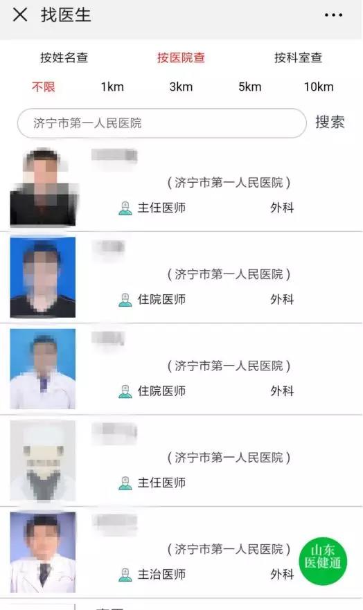 找医生:系统会基于居民所在的位置自动推荐附近3KM—10KM内的医师,居民也可以根据自身需求筛选不同医院和科别的医师,也可以直接搜索医院名称。