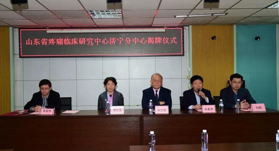 近日,山东省疼痛临床研究中心济宁分中心揭牌仪式在济宁市第一人民医院举行。山东省立医院疼痛科宋文阁教授、山东省医学会疼痛学分会主任委员傅志俭教授、济宁市第一人民医院副院长肖要来出席会议。