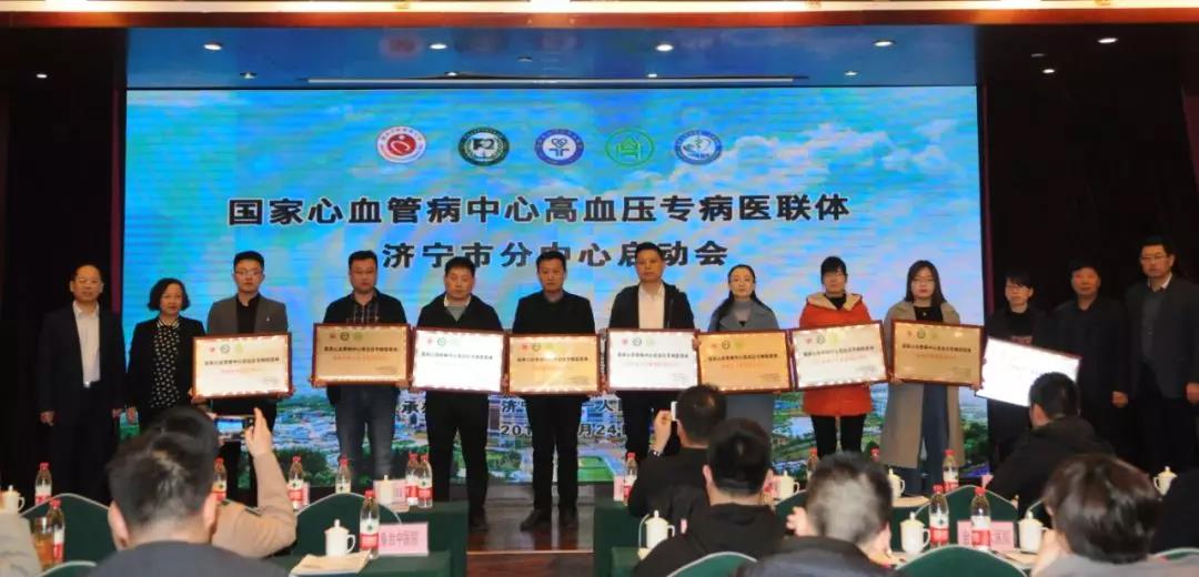 会上,中国医学科学院阜外医院高晋伟主任介绍了国家心血管病中心高血压专病医联体情况,并宣布济宁市第一人民医院被授予“国家心血管病中心高血压专病医联体济宁市分中心”。肖要来副院长、高晋伟主任、卜培莉教授共同为国家心血管病中心高血压专病医联体济宁市分中心揭牌。与会领导和专家同时为全市53家分中心医院进行了授牌。