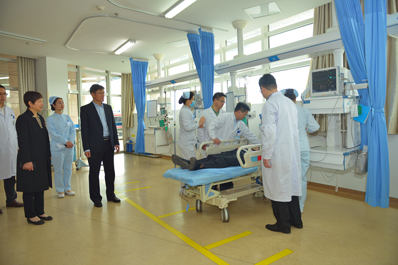 在“5.12”国际护士节到来之际,济宁市第一人民医院在东院区举办了“群发伤紧急救援应急演练”。市卫生健康委党委委员、医院党委书记、理事长孙树印以及医院工会主席、东院区执行院长许红霞亲临演练现场,应急办公室、医务部、护理部、门诊部、急诊科、重症医学科、磁共振室等科室共同参加了此次应急演练。