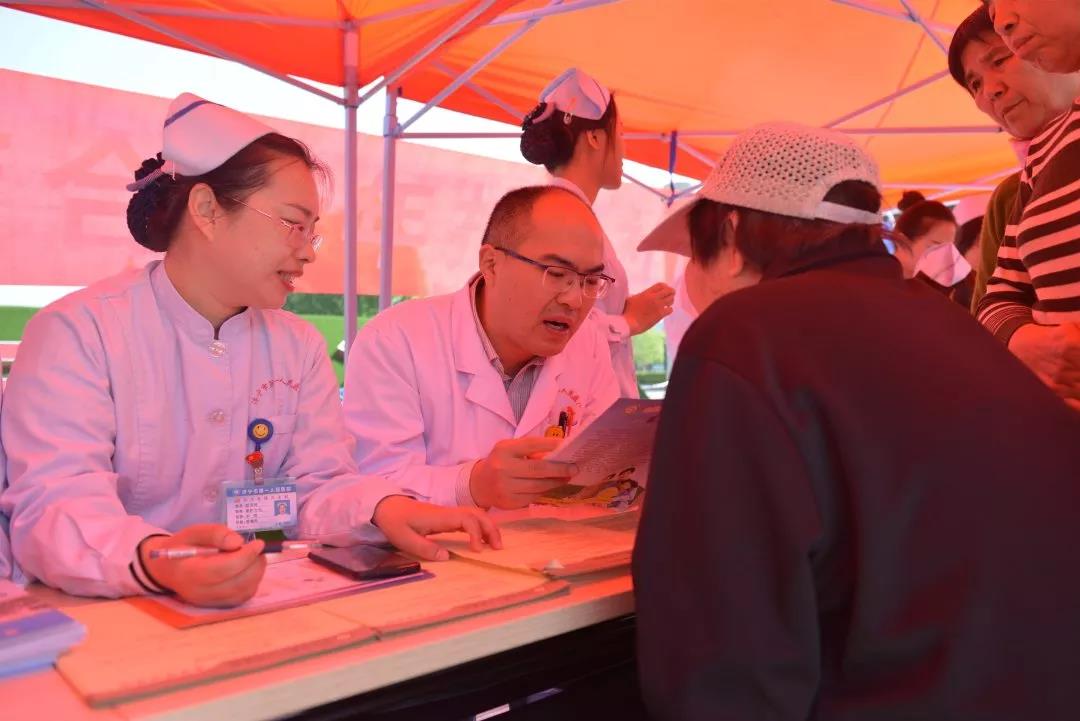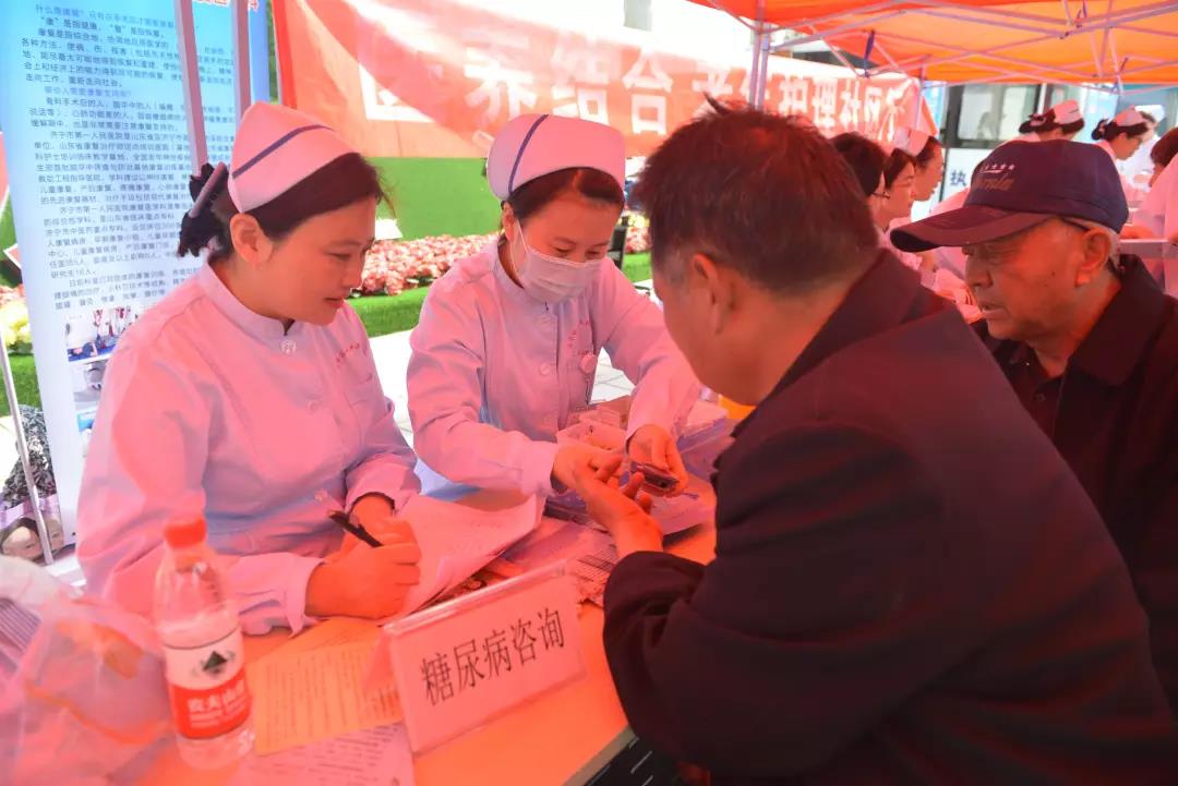 专科护士热情地为群众量血压、测血糖,并提供详细的健康指导。