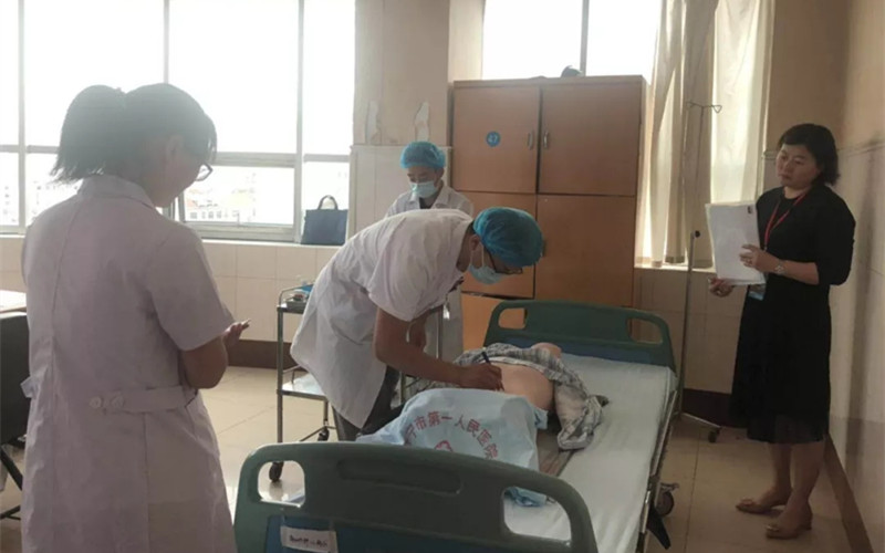 济宁医学院教务处处长陈廷带领评估专家分四组按照《山东省高等医学院校临床教学基地水平评估指标体系与标准》,通过现场查看材料、听理论课、教学查房、学生技能操作、教师座谈会、学生座谈会等方式,对医院教学工作进行了全面检查。