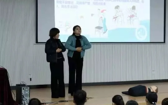 随后,针对溺水、触电、中暑、火灾、一氧化碳中毒等生活中常见意外伤害的现场急救,秋季儿童预防感冒的健康常识进行了详细讲授。并现场演示了气道异物海姆立克急救手法。志愿者朱甜甜演示了颈椎外伤患者的搬运术,并进行了心肺复苏手把手教学,让现场参与家长收获颇丰。