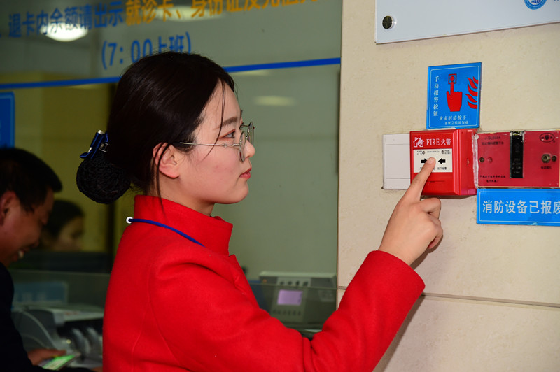 下午4点,演习正式开始,模拟场景为总院门诊楼外墙正在装修,装饰材料突然起火,门诊部值班护士长发现火情后马上拨打消防应急电话,并安排导医按下手工报警按钮。