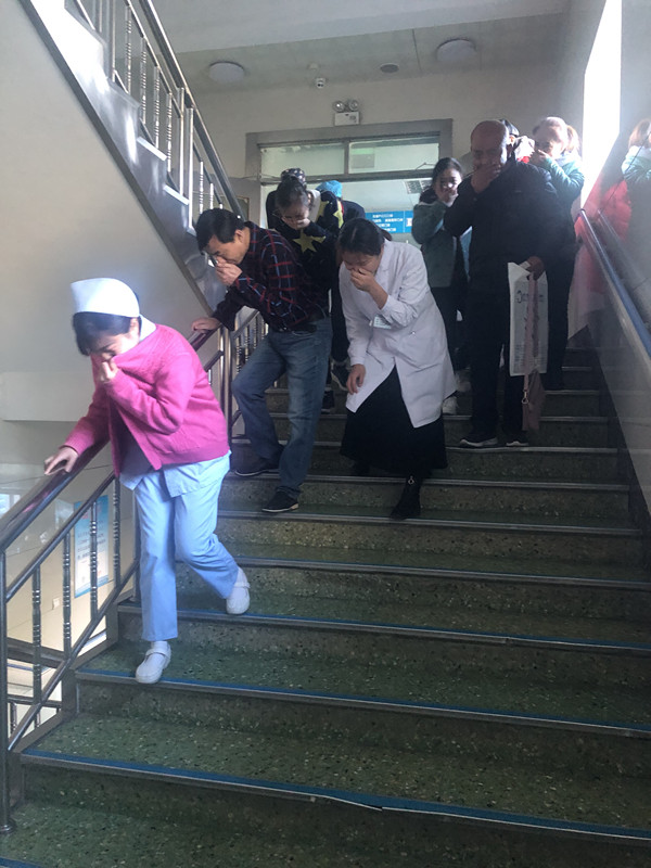 门诊楼全楼各科室听到警报后,各自组织科室人员快速带领科室工作人员、患者逃离火灾现场,至急诊楼南停车场集合。整个演练过程安全有序,科室平均撤离时间6分钟。