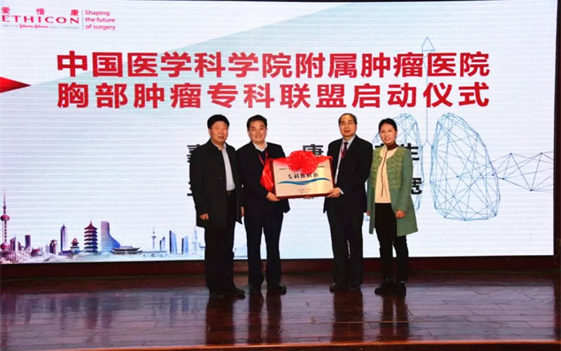 随后,中国医学科学院肿瘤医院胸外科一区主任毛友生、市第一人民医院副院长肖要来、市卫生健康委医政科副科长张文静、济宁市医学会胸外科暨微创技术专业委员会主任委员张康共同为国家癌症中心/中国医学科学院肿瘤医院胸外科专科医联体揭牌。