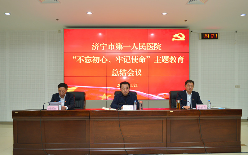 1月21日下午,济宁市第一人民医院召开“不忘初心、牢记使命”主题教育总结会议,深入学习贯彻中央、省、市委、市卫生健康委党委“不忘初心、牢记使命”主题教育总结会议精神,总结医院主题教育开展情况,对巩固拓展主题教育成果进行安排部署,推进“不忘初心、牢记使命”制度建设。