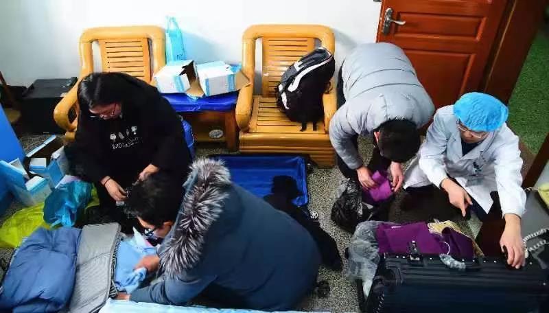 当得知首批援助医疗队具体“出征”湖北的时间后,医院早早地为7位出征医护人员配备了专门的拉杆箱,里面备足了防护设备、日常用品、药品等物资。