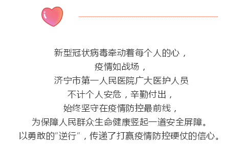 在济宁市第一人民医院,工作群内的此类请战信息排得很长,作为全市定点救治医院,已有50多位医护人员,奋战在抗击新型冠状病毒肺炎的最前线,还有很多在主动请缨,加入战斗。他们当中,除了高年资的科主任、护士长们,还有不少青年医护人员,这其中不少都是新晋升的宝妈宝爸们,他们不分昼夜,轮流值守……