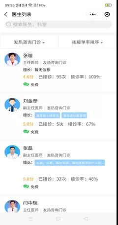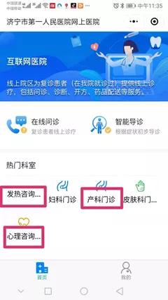 2.选择首页科室“发热咨询门诊”或“心理咨询门诊”或“产科门诊”—选择医生进行问诊。