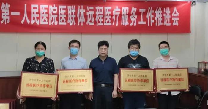 会上,济宁市第一人民医院与30家参会代表签订远程医疗服务合作协议并进行授牌仪式。