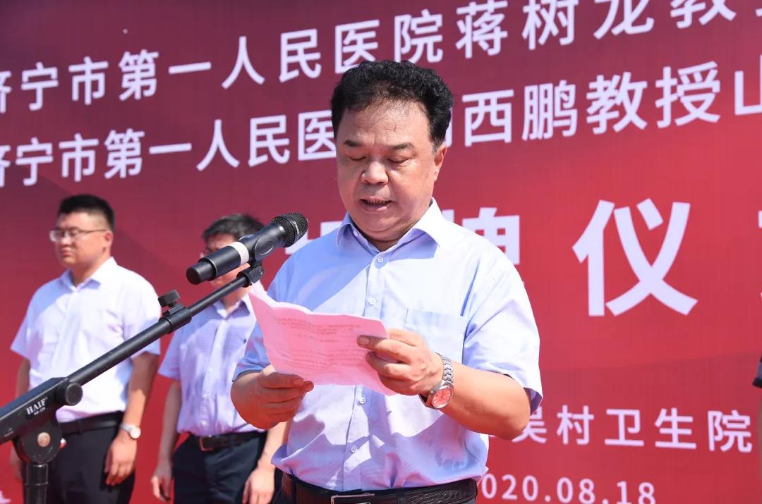8月18日,济宁市第一人民医院“泰山学者蒋树龙教授工作站”、“山东省名中医闫西鹏教授工作站”揭牌仪式在曲阜吴村卫生院举行。济宁市第一人民医院理事长、副院长郭洪敏,社区卫生服务部主任蒋树龙,中医科主任闫西鹏及曲阜市政协副主席李刚,曲阜市卫生健康局党委书记、局长孔卫东出席仪式。