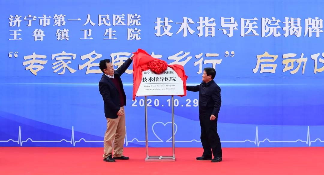 启动仪式上,济宁市第一人民医院理事长、副院长郭洪敏、鱼台县政府副县长李清霞共同为“济宁市第一人民医院技术指导医院”揭牌。