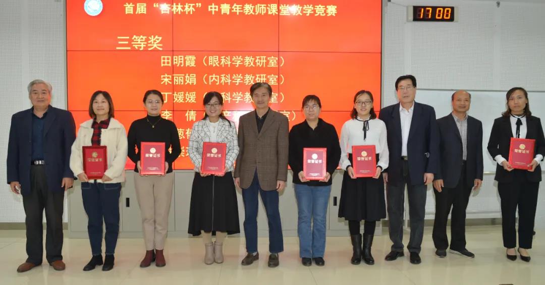 参赛选手通过教案、课件、说课、课堂授课四个方面的全面评比,经过初赛、决赛的激烈角逐,最终外科学教研室梁志远、儿科学教研室葛昂荣获一等奖。儿科学教研室郭恩玉、外科学教研室邢磊、康复医学教研室何西谦、急诊医学教研室王爽获得二等奖。眼科学教研室田明霞、内科学教研室宋丽娟、内科学教研室丁媛媛、妇产科学教研室李倩、护理学教研室辛葱郁、医学影像学教研室段崇玲获得三等奖。妇产科学教研室武加利等荣获优秀奖。医学影像学教研室段崇玲获得最佳教案奖,外科学教研室梁志远获得最佳课件奖,急诊医学教研室王爽获得最佳说课奖,儿科学教研室葛昂荣获最佳授课奖。