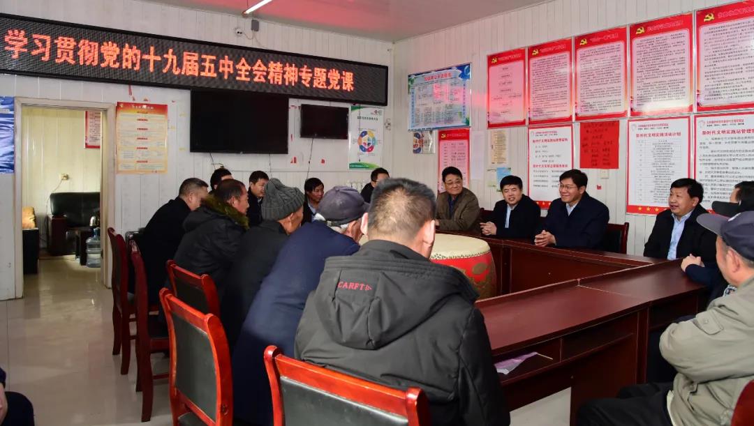 在村委办公室,孙树印与西孙吾村第一书记工作组、村“两委”成员和村民党员代表进行座谈交流,详细了解西孙吾村集体经济发展情况,并结合西孙吾村实际情况,对村级规划及经济发展方向提出了指导建议。孙树印书记指出,党的十九届五中全会审议通过的“十四五”规划和二〇三五年远景目标重点突出了新发展理念的引领作用,以高质量发展为主题,就要坚定不移贯彻新发展理念。孙树印强调,要坚持以党的十九届五中全会精神为指导,把贯彻落实全会精神融入到实际工作中去,把新发展理念融入到乡村振兴战略各项措施中去,把上级党委各项决策部署和工作要求落到实处,全面推进乡村振兴,为决胜全面建成小康社会不懈奋斗。