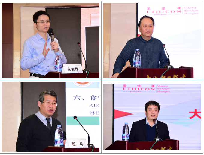 会议邀请复旦大学附属中山医院袁云锋教授、上海市胸科医院谷志涛教授、山东省医学会胸外科学分会主任委员蒋仲敏教授、山东省省立医院张林教授分别就《肺段精准切除段间平面的裁剪经验介绍》、《微创胸腺切除术术中出血及应对措施》、《同时性多原发食管癌胃窦癌治疗经验分享》、《食管胃结合部腺癌(AEG)的外科诊疗进展》为题作了深入浅出地剖析与讲解。济宁市第一人民医院胸外科张康教授作了题为《加速康复理念指导下食管癌微创手术推广应用经验介绍》的报告,对食管癌微创手术开展情况作了详细的阐述。