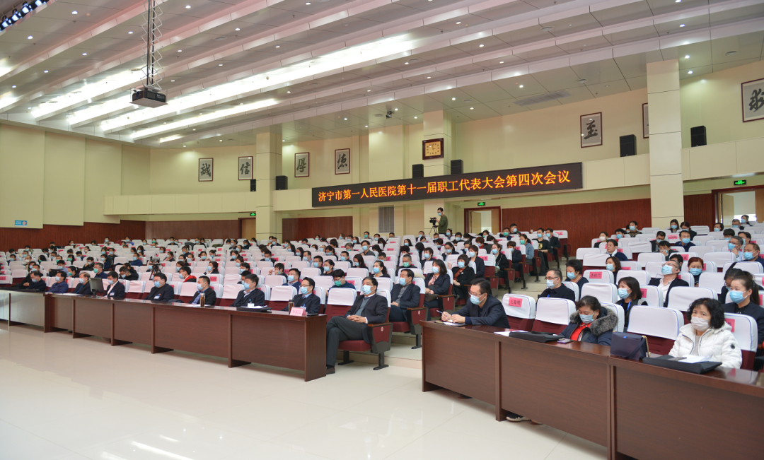 1月28日—29日,济宁市第一人民医院报告厅内庄重热烈,伴随着庄严的国歌声,医院第十一届职工代表大会第四次会议暨2020年度总结表彰大会隆重召开。院领导班子全体成员和职工代表、获奖表彰人员代表、特邀代表参加了会议。会议由医院党委委员、工会主席许红霞主持。