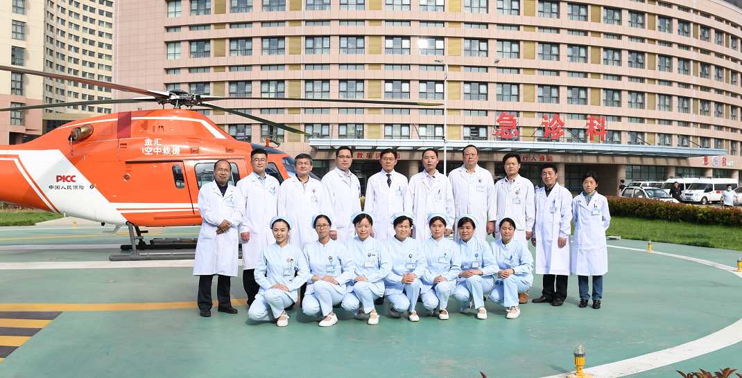 而在医院举全院之力建设的另一大医疗中心——胸痛中心,自成立以来取得的成绩同样令人瞩目。2019年7月,济宁市第一人民医院胸痛中心顺利通过国家级胸痛中心认证。作为目前国际上备受关注的一种医疗模式,胸痛中心建设发展情况的好坏,已然成为衡量一家医院急性心肌梗死救治水平的重要标志之一。目前,济宁市第一人民医院胸痛中心集院前急救——院内急诊——急诊介入于一体,急诊介入医师24小时值班,确保了急性心肌梗死救治绿色通道的通畅,最大限度缩短心肌缺血时间,改善患者预后。同时,医院大力拓宽应急救治途径,具备空中救援能力,进一步缩短总缺血时间,更有助于急性胸痛患者救治。2019年至今,胸痛中心共上报8136例胸痛患者,首次医疗接触到首份心电图时间的月平均时间3.91min、首份心电图到确诊时间的月平均时间2min、D-to-B月平均时间65min,一系列质控指标均高于质控指标,并仍在不断改善,实现精益求精。