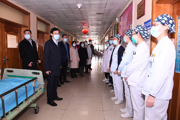▲2月12日,济宁市第一人民医院领导班子分组走访慰问三个院区的一线工作人员。