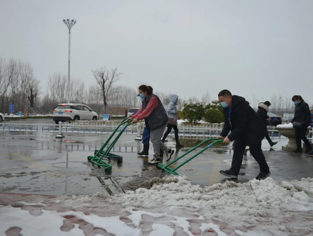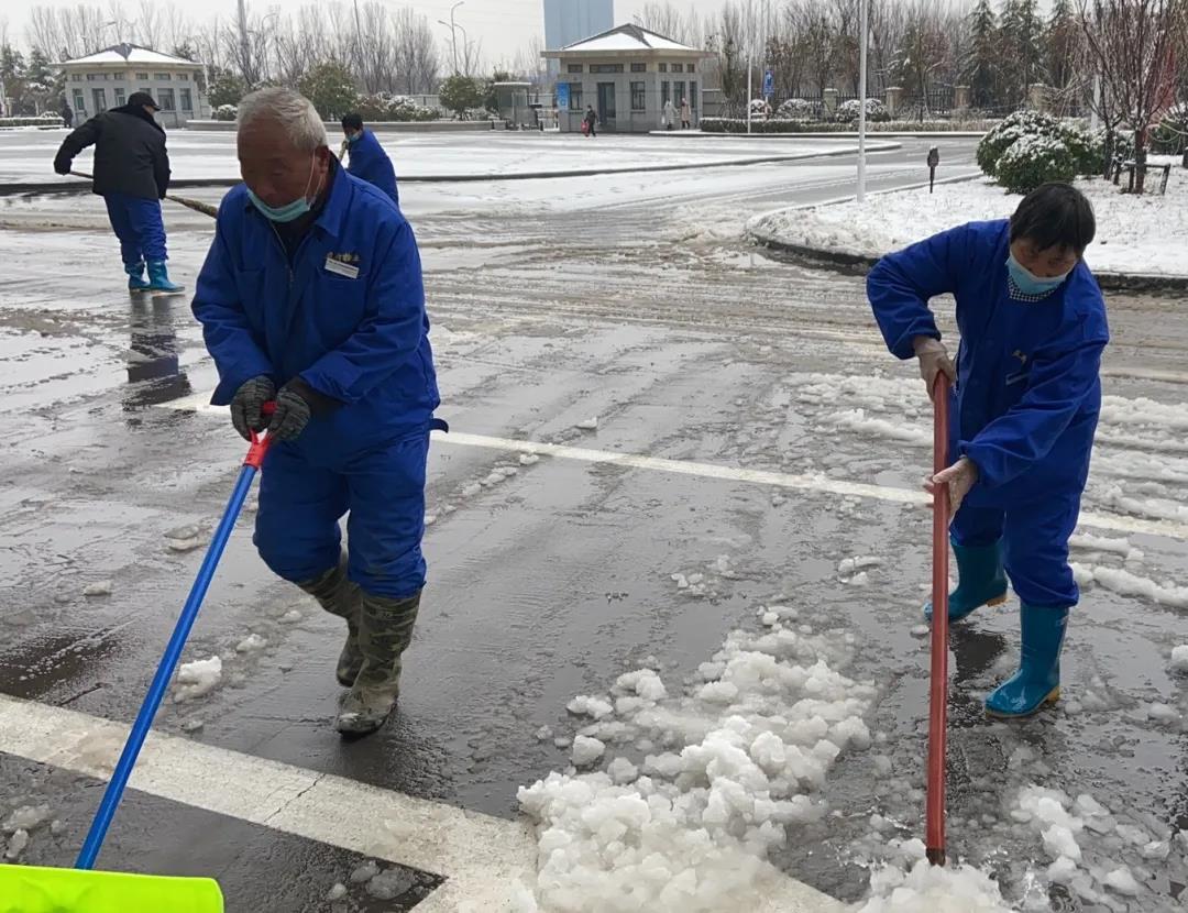 今日,我市迎来了新年的第一场雪。瑞雪兆丰年,大雪给医院披上了银装素裹的美丽外衣,但湿滑的路面存在着安全隐患,给患者的出行带来不便。为保障患者就诊安全,济宁市第一人民医院三个院区立即组织人员开展扫雪除水行动。