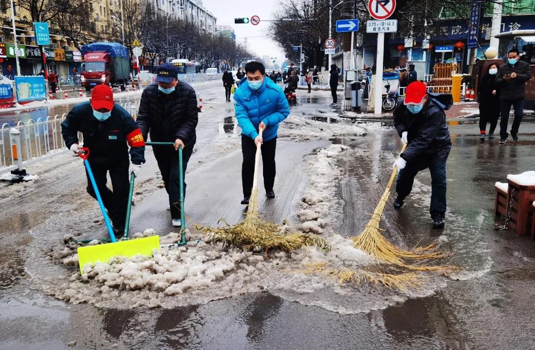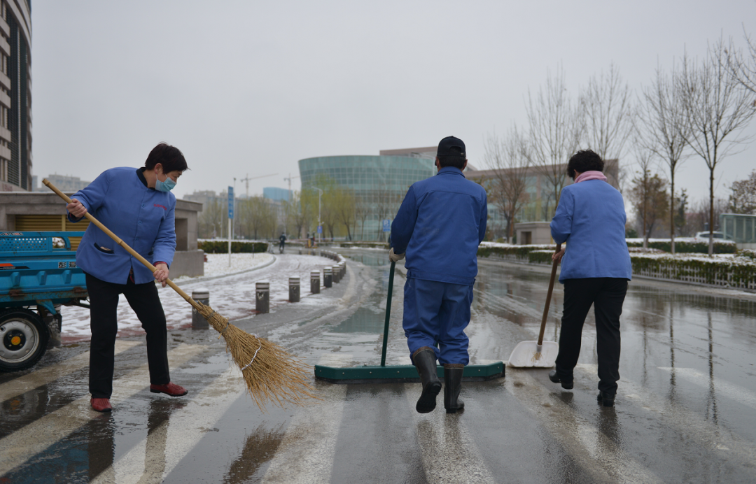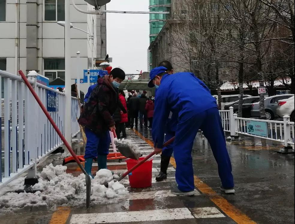 为保障患者就诊安全,早上6点济宁市第一人民医院组织工作人员对三个院区主干道及进出口进行清理,以保证人员的安全通行,同时又对门诊楼、急诊楼等门前广场进行积雪和积水的清理,忙碌的身影构成了一道亮丽的风景线,道路上的积雪被一扫而光,为就医患者及来往行人营造了安全的就医环境。