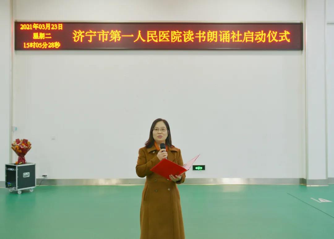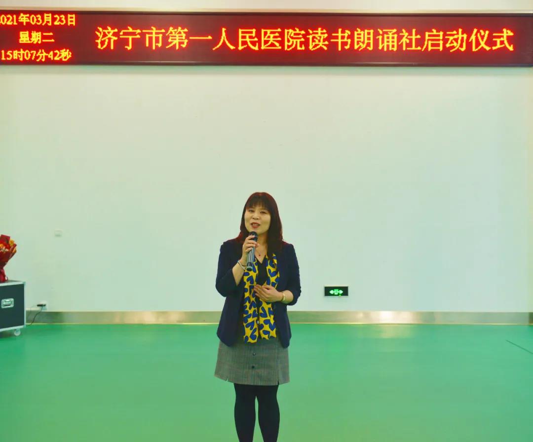 随后,医院工会副主席、女工委主任隋烟宁宣读了《济宁市第一人民医院读书朗诵社活动方案》;读书朗诵社负责人冯自育老师进行了发言。启动仪式现场,大家欣赏了邱莹主任朗诵的《再别康桥》、王晓璐《阅读带给我们的成长》、读书朗诵社部分成员朗诵的《写给春天的诗》等精彩作品汇报。