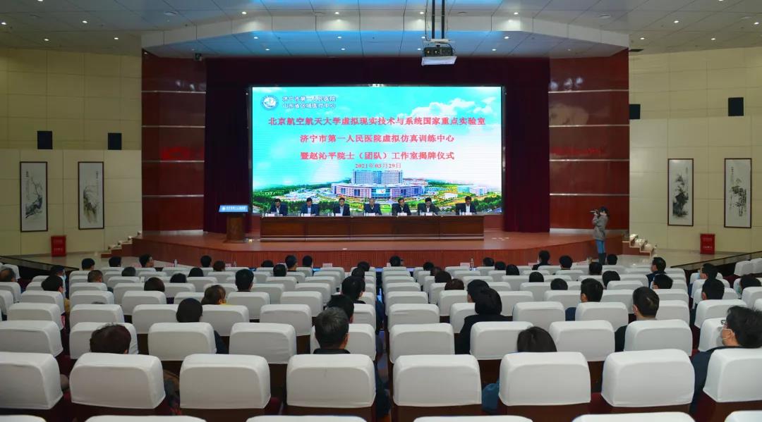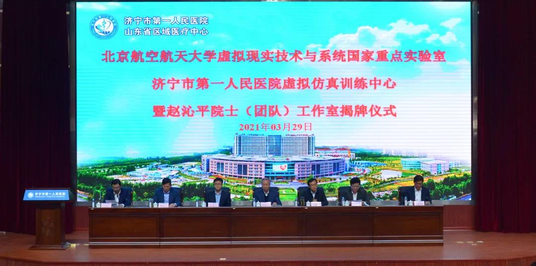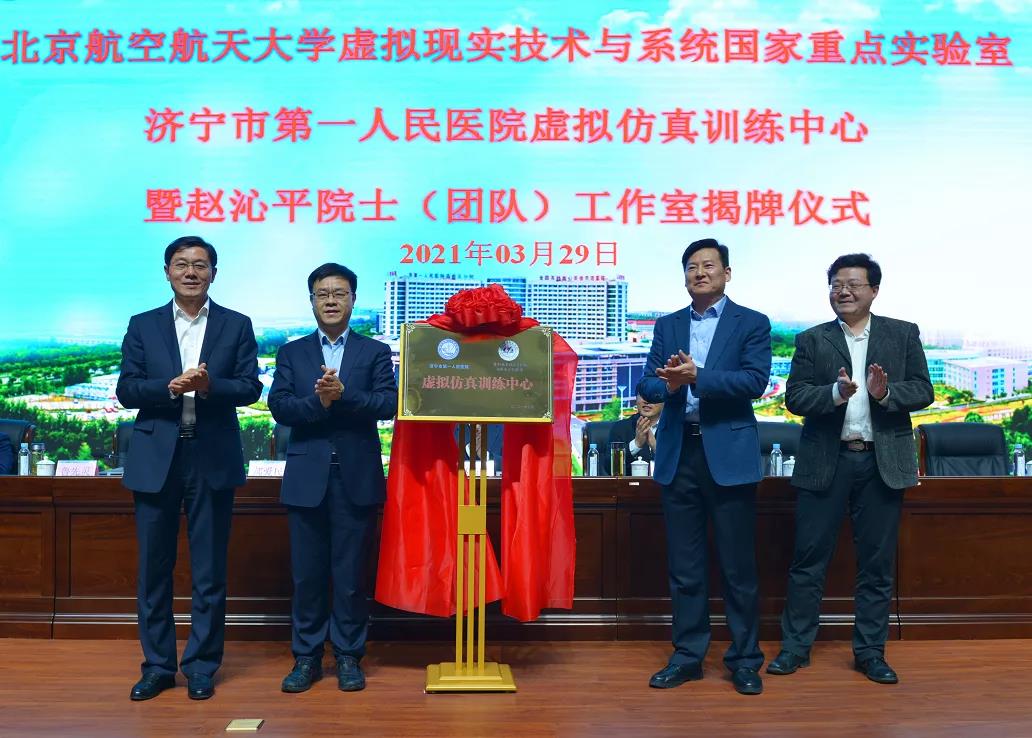 3月29日,北京航空航天大学虚拟现实技术与系统国家重点实验室济宁市第一人民医院虚拟仿真训练中心暨赵沁平院士(团队)工作室揭牌仪式隆重举行,标志着济宁市第一人民医院在医学教学信息化建设方面迈出新步伐,将对鲁西南地区医学虚拟仿真教学发展产生积极的推动作用和示范效应。