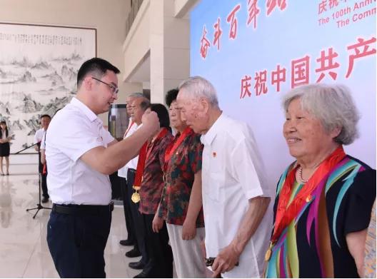 市卫健委党组成员、医院党委书记孙树印、医院党委副书记、院长钟海涛逐一为医院党龄满50周年、一贯表现良好的10位老党员代表颁发了纪念章。