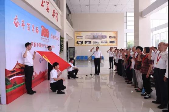 随后,孙树印同志与出席仪式的全体党员一起举起右拳面向党旗,重温了入党誓词。