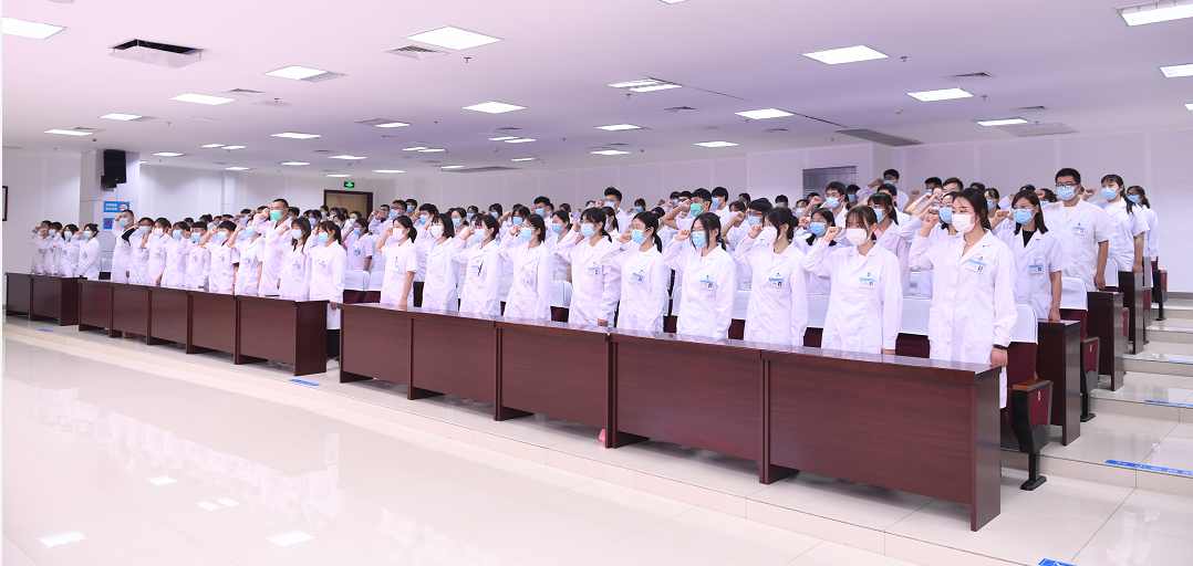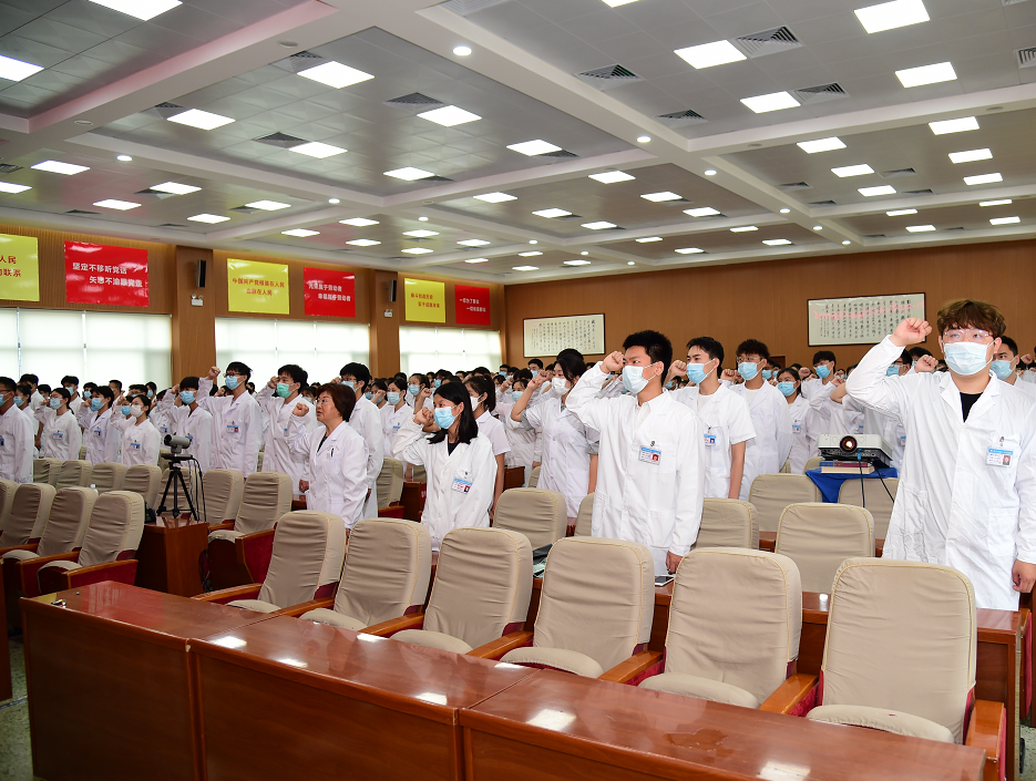 教学培训部主任李伟从医院教学的发展历程、教学基础设施、教学管理、师资队伍及重点学科建设等方面做了介绍,并再次强调了医院临床实习对医学类专业学生的重要性,使实习生对医院教学的整体情况有了充分了解。随后,李伟带领全体实习生宣读《医学生誓言》,场面庄严,深入人心。