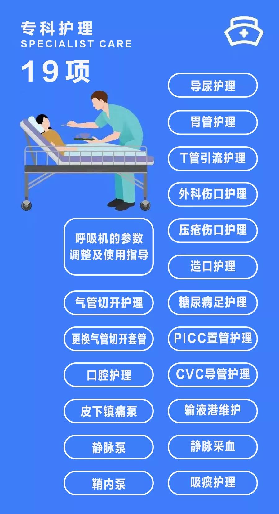 随着社会人口老龄化,失能、慢病、空巢老人比例逐年上升,很多群众在家里需要护理,但又不方便上医院,影响康复进程和信心。为此,济宁市第一人民医院精准对接人民群众多样化的健康服务需求,利用专科护士资源,依托互联网技术,为出院患者或行动不便的患者群体提供延伸护理服务。截止目前,济宁市第一人民医院已开通管路护理、伤口造口护理、PICC及输液港维护等36个服务项目。