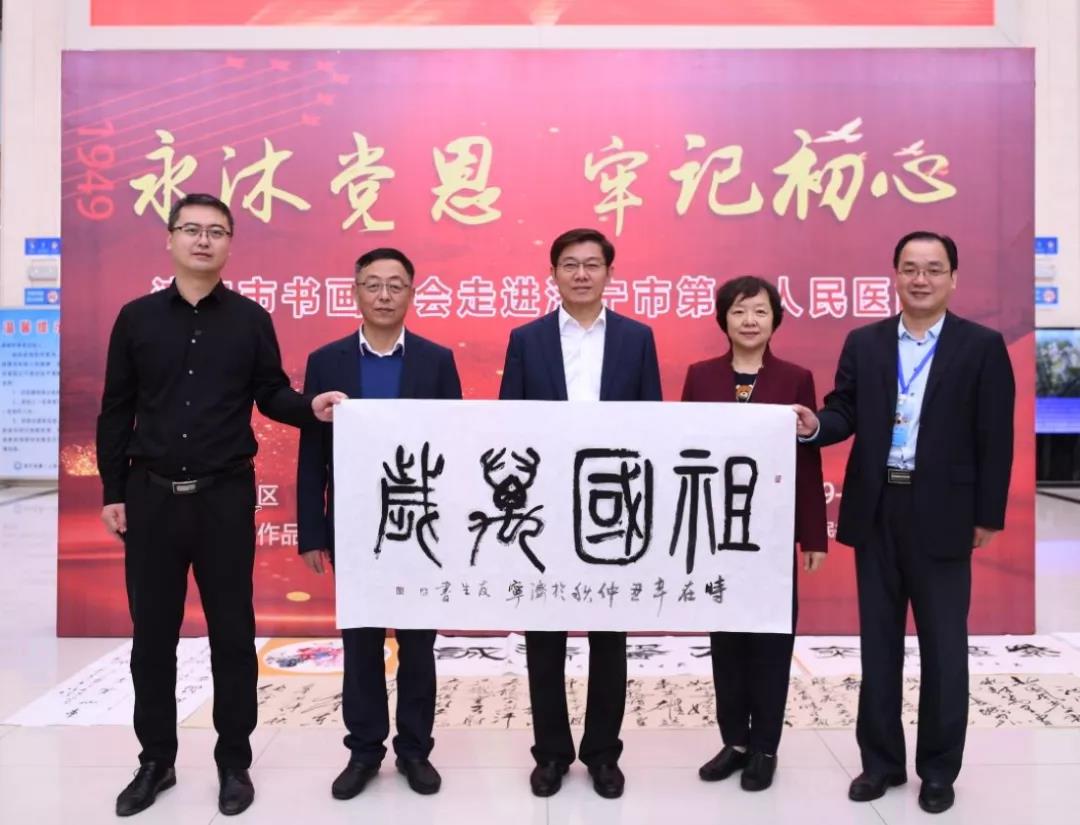 10月9日,济宁市第一人民医院举办“永沐党恩 牢记初心”主题实践活动,邀请济宁市书画协会艺术家走进济宁市第一人民医院,在优美的院区,用作品讴歌建党百年,用作品回望国庆72周年,用作品展示百年医院成就,用作品记录为群众办实事。
