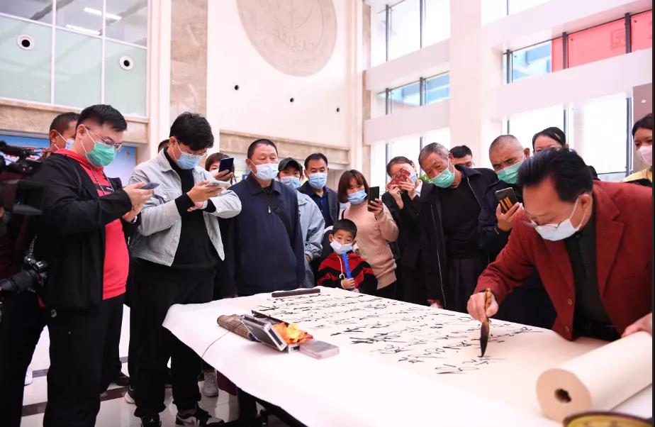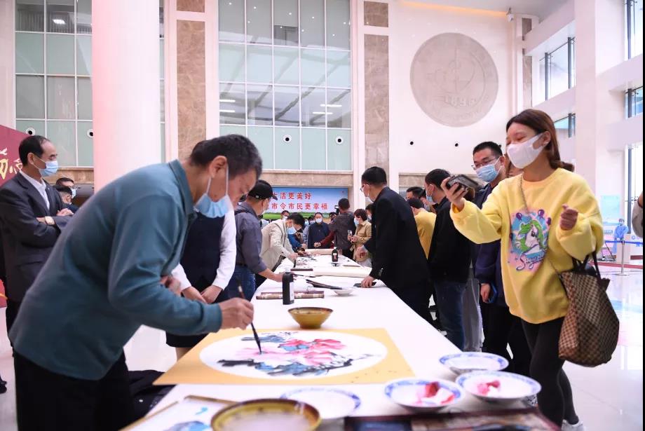 启动仪式后,市书画协会主席王友生及8位书画家现场挥墨泼毫、潜心创作,用其独特的书画艺术作品抒发对党、对祖国的热爱。“医者仁心”、“大医精诚”、“祖国万岁”、“胸怀千秋伟业,恰似百年风华”、“百年一院正青春”等一幅幅优秀的艺术作品,让现场围观的群众心潮澎湃。
