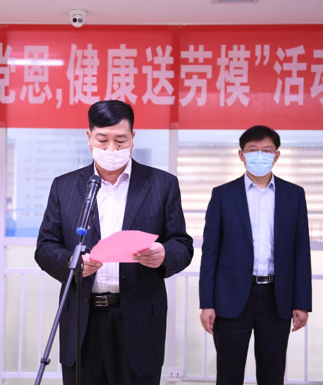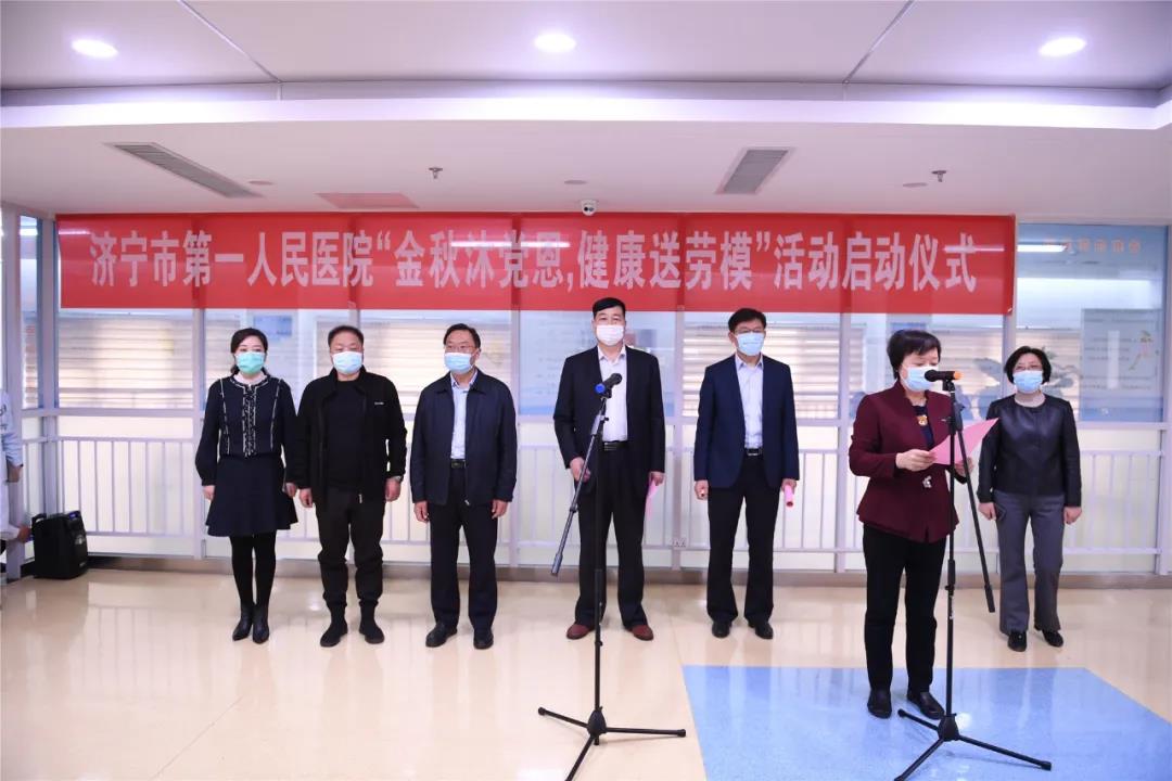 为弘扬劳模精神,关心关爱劳动模范,10月26日,济宁市第一人民医院联合市总工会、市劳模协会共同举行“金秋沐党恩,健康送劳模”主题活动并举行启动仪式。济宁市卫生健康委党组成员、市第一人民医院党委书记孙树印,济宁市总工会宣教部部长、市劳动模范协会党支部书记岳书亮,济宁市劳动模范协会常务副会长李泽平及劳模代表、医院相关负责人参加。仪式由医院党委委员、工会主席许红霞主持。