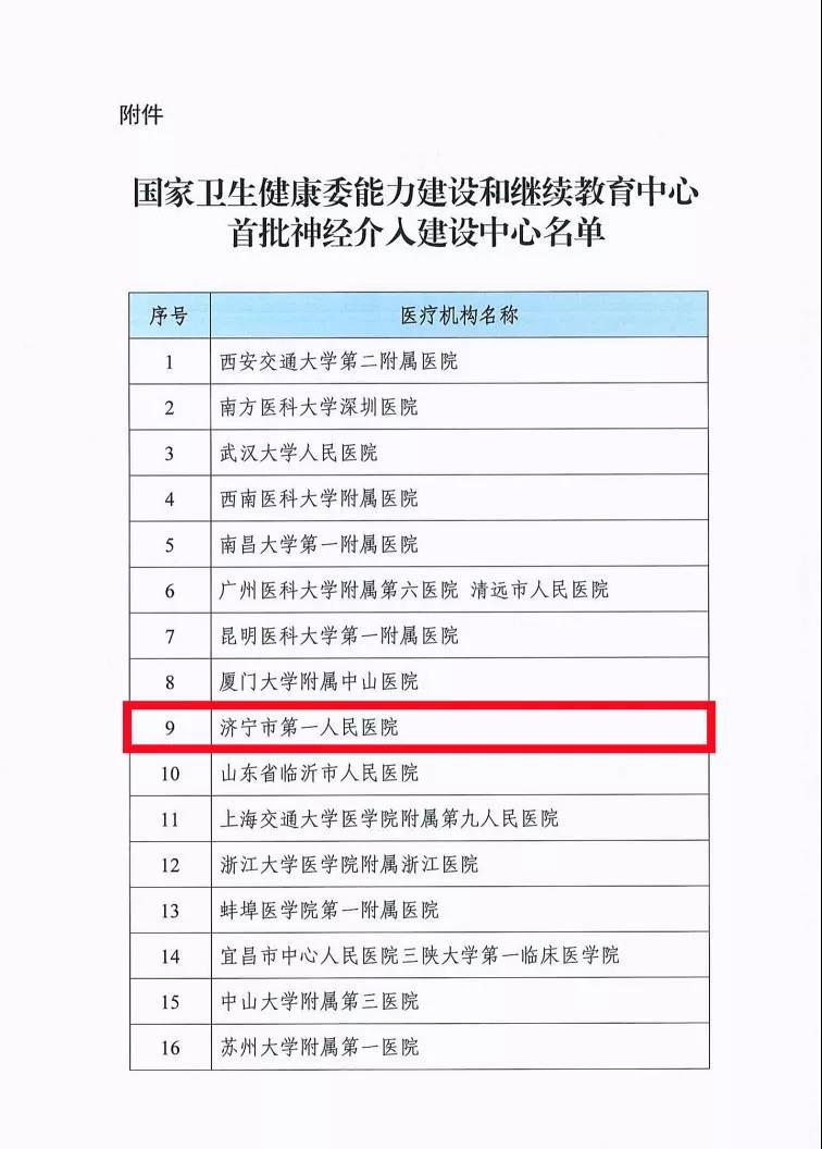 6、全国第九!济宁市第一人民医院以优异成绩获批首批国家级神经介入建设中心