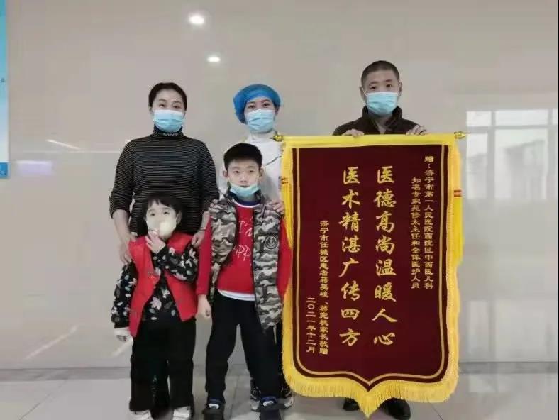 1月8日,“三九”敷贴现场,吴先生一家四口前来送锦旗,兄妹俩近几年一直在中西医结合儿科就诊,经过辨证论治,针对性的给予中药口服和中药贴敷治疗,效果显著,两个孩子的免疫力得到很大提升,对中西医结合儿科苑修太主任团队感激不已。为患儿贴敷期间,中西医结合儿科医护人员的默契配合,精心护理,有效果保证贴敷效果。