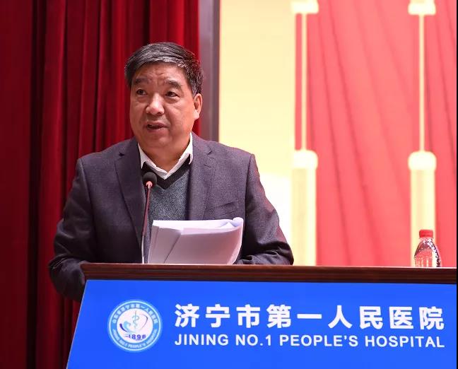 在职工代表们热烈的掌声中,济宁市第一人民医院党委副书记、院长钟海涛作医院工作报告。