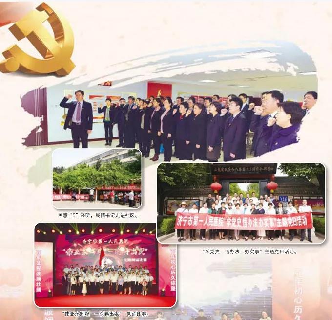 强力推进支部规范化建设,23个党支部被济宁市卫生健康委评为五星级党支部,其中3个党支部被市直机关工委评为五星级党支部。创建党建品牌2个,党员先锋岗29个,党员示范窗口23个,树立医德医风标兵50个,持续加大先进典型宣传教育,强化基层党组织战斗堡垒作用。